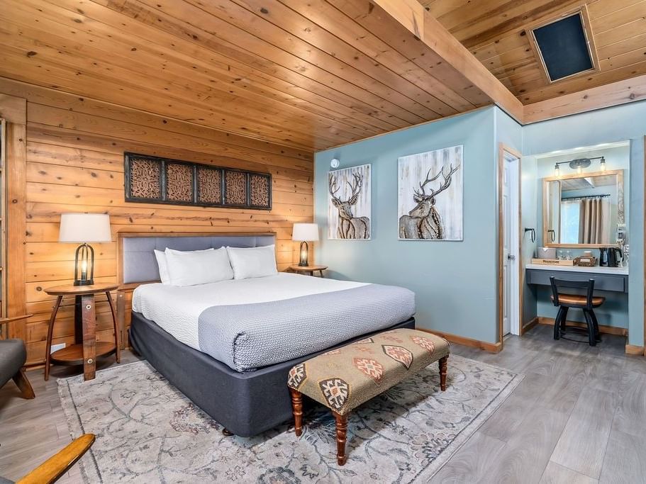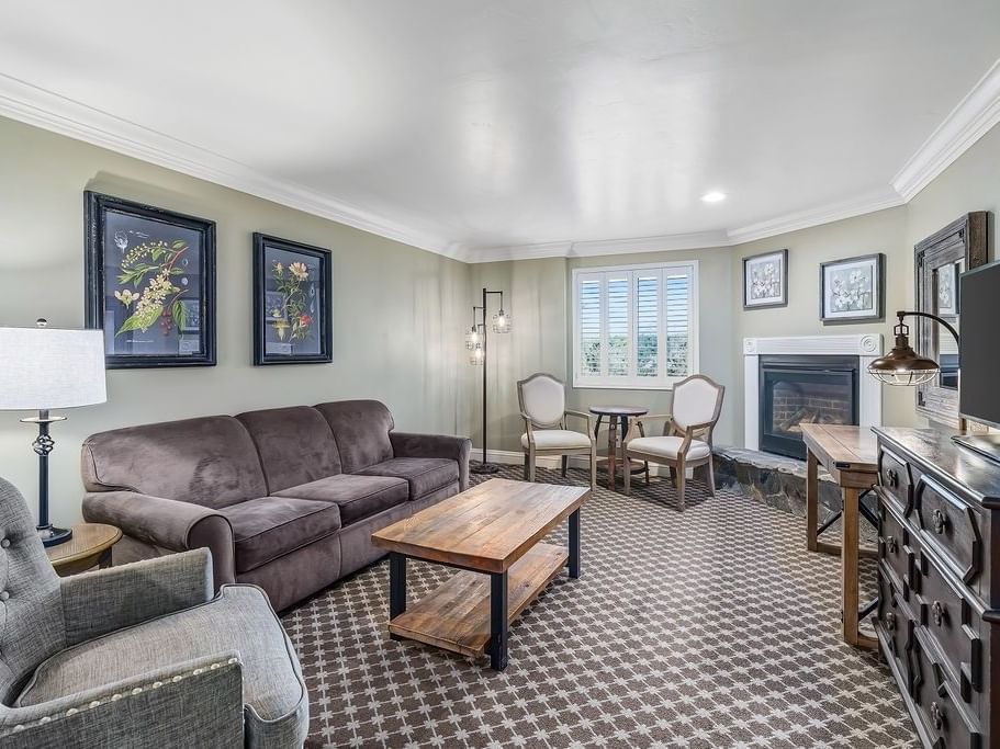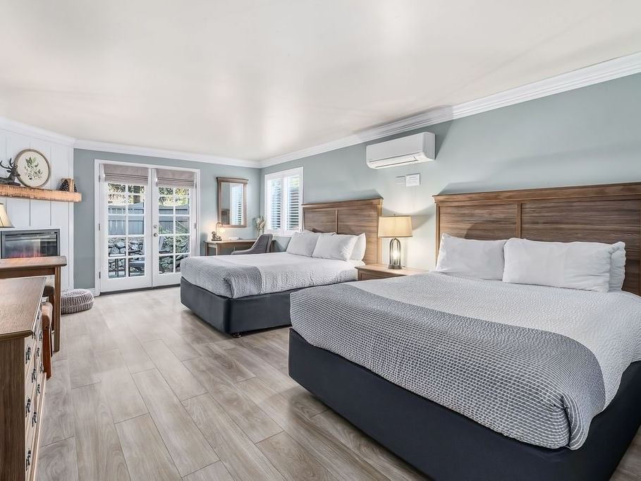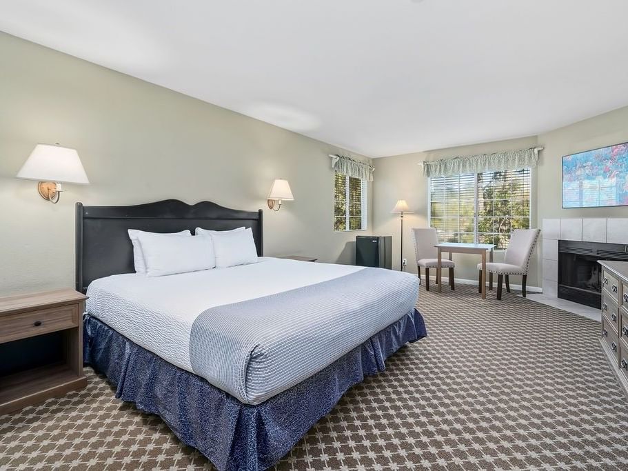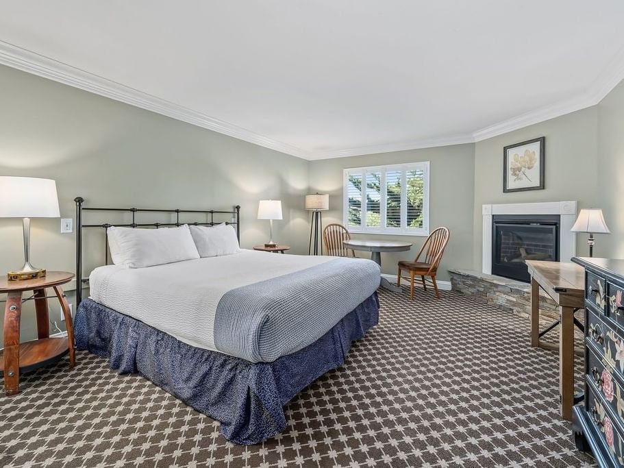 Enjoy the best of both comfort and scenery. This king room pairs a cozy fireplace with beautiful woodland views, offering an inviting place to unwind between Cambria adventures. Sleeps up to two guests.