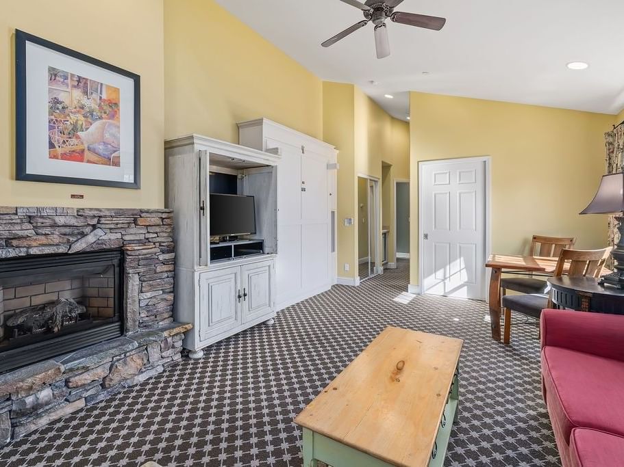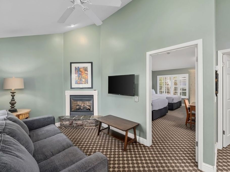 A great choice for families or groups, this expansive suite offers a private king bedroom, a separate living room with a Murphy bed and sofa bed, and fireplaces in both spaces.